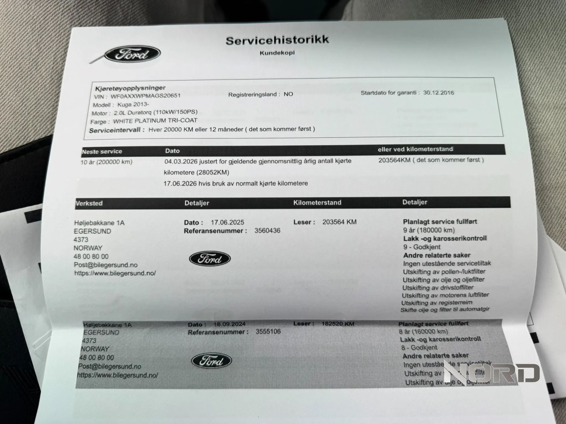 ✅ Ostatni serwis w ASO Ford w Norwegii, 17.06.2025 przy przebiegu 203.564km!