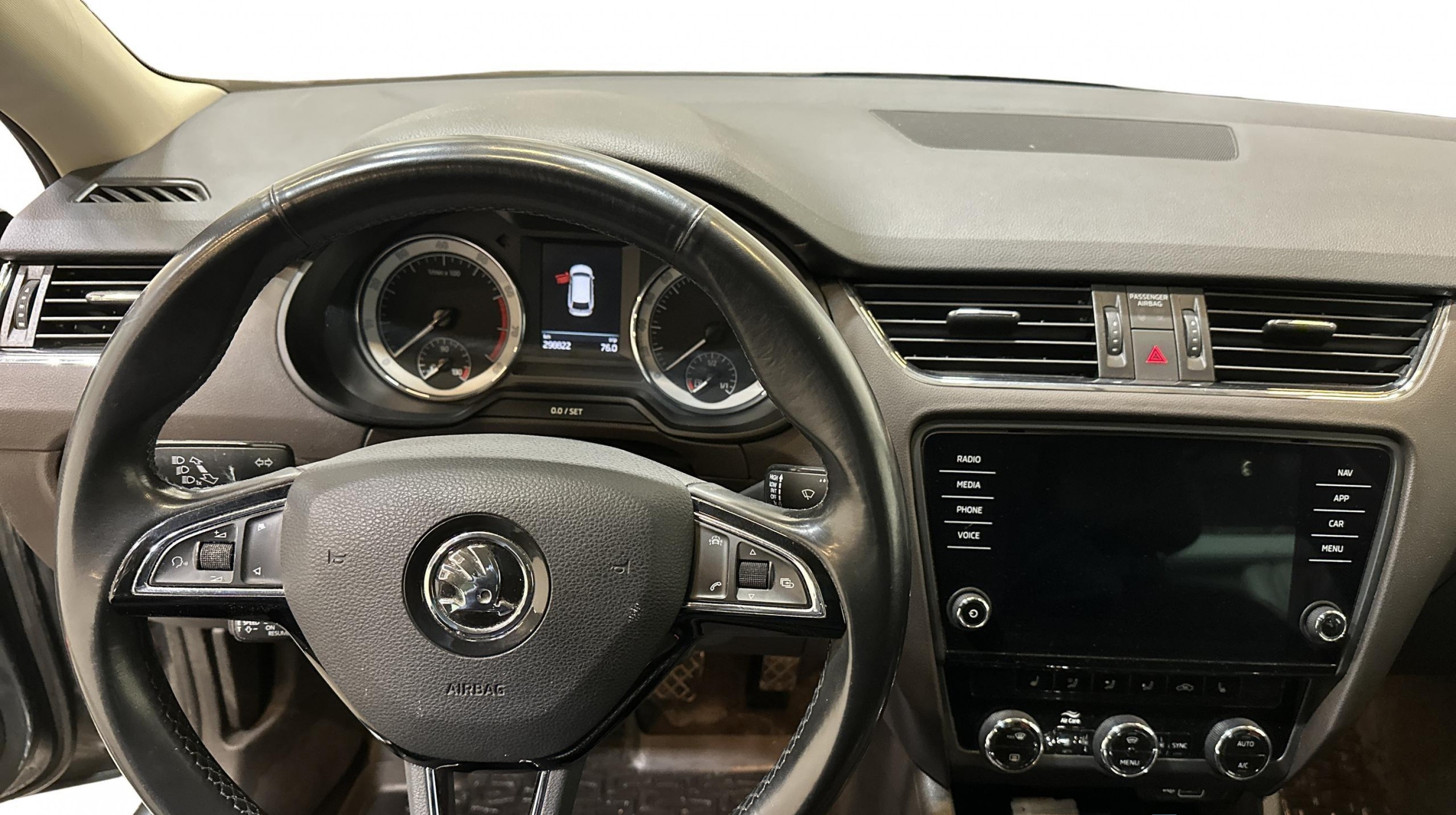 🔈 klimatyzacja, elektryczny fotel z pamięcią, SmartLink-Apple Car Play, nawigacja, czujniki parkowania, kolorowy wyświetlacz, podgrzewane fotele, kamera cofania, hak holowniczy, adaptacyjny tempomat, Laurin & Klement, nagłośnienie Canton hi-fi, ogrzewanie postojowe.